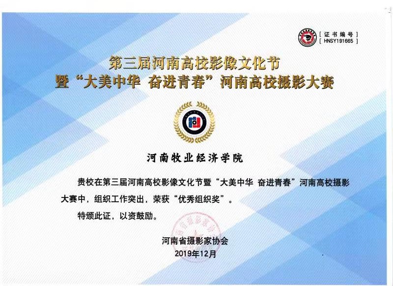 本次摄影大赛由河南省摄影家协会、河南省高校摄影学会共同主办,郑州铁路职业技术学院承办。河南省高校摄影学会副主席楚恩熠谈到河南高校影像文化节暨河南高校摄影大赛已连续成功举办了三届,得到了河南省摄影家协会、新华网、河南财政金融学院、澳门信誉最好十大平台、郑州铁路职业技术学院等相关单位的大力支持,其中澳门信誉最好十大平台在摄影大赛中,组织工作突出,被授予“优秀组织奖”荣誉称号。