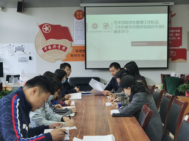 为广泛宣传本科教学工作合格评估,普及本科教学工作合格评估的基本知识,号召全体辅导员积极参与到学校迎接合格评估工作中来,澳门十大信誉网赌大全学生管理工作队伍在院党委副书记王友峰的带领下,于4月18日上午在1号楼417办公室对《本科教学工作合格评估知识手册》进行了集体学习。