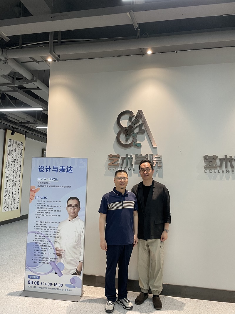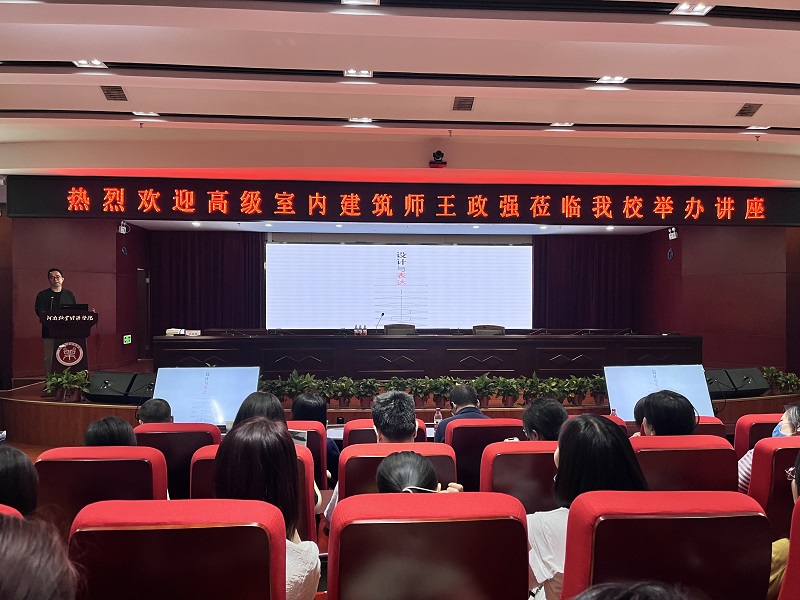 2023年6月8日下午,澳门十大信誉网赌大全邀请高级室内建筑师、郑州弘文建筑装饰设计有限公司总设计师王政强先生在龙子湖校区图书馆一楼报告厅举办了“设计与表达”专业讲座。讲座由张鹏院长主持,全体教师和部分学生代表聆听了讲座。