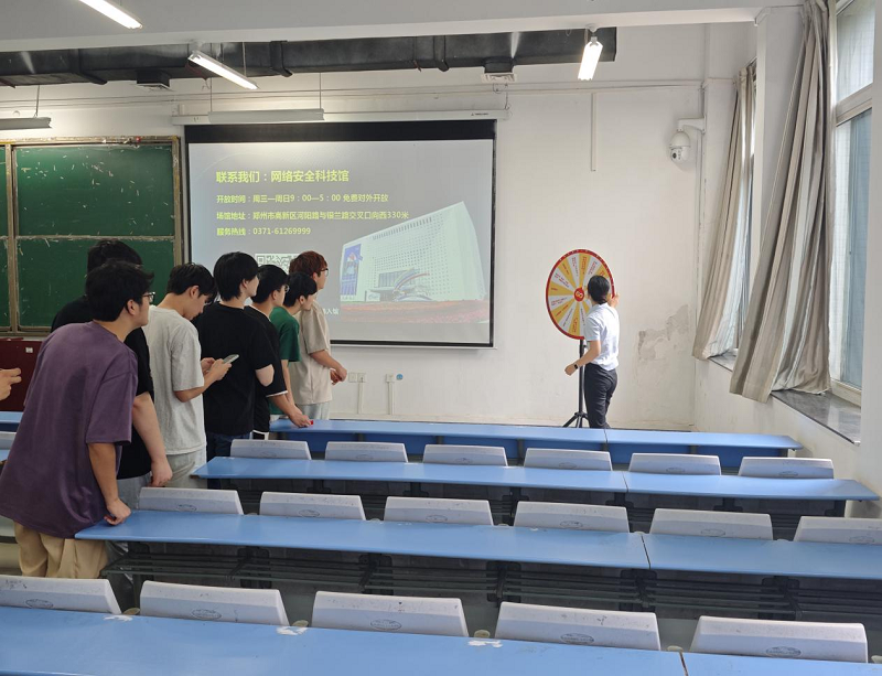 会议伊始,刘显首先针对网络安全的重要性做了科普。随后,由郑州市高新区网络安全科技馆展教部一级讲解员王曼为广大学生进行了具体的介绍与讲解。她从网络的诞生讲起,指出数字化带来美好生活的同时带来的安全问题,引出“作为大学生,我们能做什么呢?”“捍卫国家网络安全,我们还能做什么?”这些问题。接着,她通过16条网络诈骗手段和网络安全意识提升的四步策略引导大家如何学会防范网络诈骗,并通过计算机的使用、正确使用U盘和数据的删除与恢复三种方式帮助大家掌握网络安全的实用技能。然后,她详细讲述了国家安全教育典型案例,引导大家严格做到“五不能”,共同保守国家秘密,维护国家安全。报告会结束后,王曼通过游戏和飞镖答题的方式与同学们进行互动,号召大家在未来的生活中捍卫网络空间公平正义、提升网络法治意识和素养。