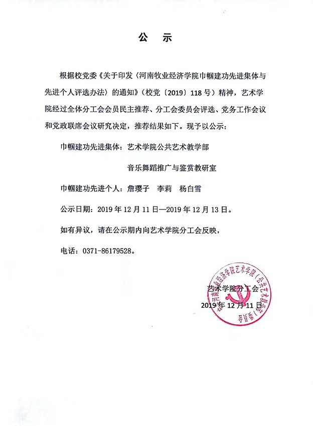 关于推荐2019年度巾帼建功先进集体与先进个人的公示