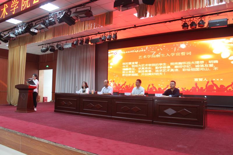 2018年9月10日上午,澳门十大信誉网赌大全在我校龙子湖校区大学生活动中心四楼隆重举行了2018级新生开学典礼暨理想信念教育。澳门十大信誉网赌大全院长田秀群、党总支书记王在钦、副院长张鹏、副书记贾艳艳、全体辅导员老师、教师代表及2018级全体新生参加了开学典礼。开学典礼由党总支副书记贾艳艳主持。