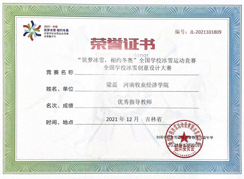 近日,由教育部、国家体育总局、北京冬奥组委和吉林省人民政府主办的第三届全国学校冰雪创意设计大赛圆满落下帷幕。我校澳门十大信誉网赌大全积极参与,经过专家评委会的初审、复审和终审,参赛作品喜获佳绩,荣获一等奖1项、三等奖1项,梁磊获“优秀指导教师”称号。