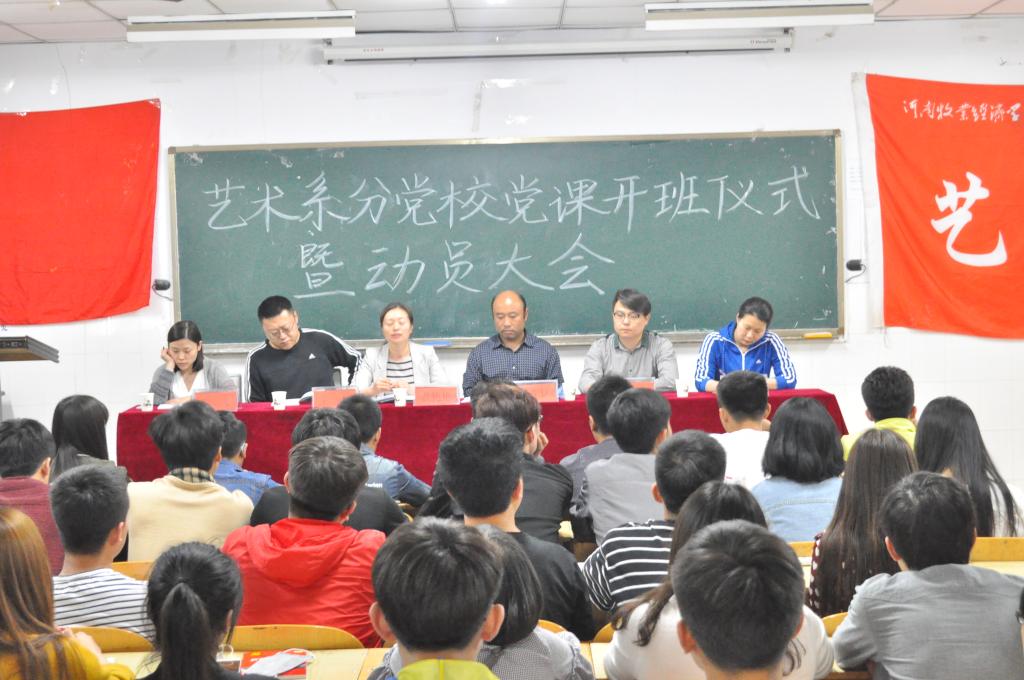 艺术系分党校举办2016年第一期入党积极分子培训班开班仪式暨动员大会4月19日,在 YW106隆重举行。本期学员130名,开班仪式由我系党总支副书记贾艳艳主持,系党总支书记王在钦,系团总支书记韩飞,系学生第一、二、三党支部书记王备、崔栋、彭飞及我系全体辅导员出席了此次典礼。