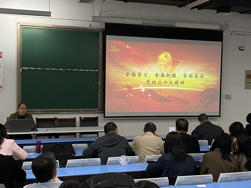 为贯彻落实好党的二十大重大决策部署,4月13日下午,澳门十大信誉网赌大全党委书记王国辉在1号楼304为学院全体教职工作题为“全面学习、全面把握、全面落实党的二十大精神”专题辅导讲座,学院全体教职工参加。