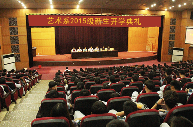 9月25日下午2点,澳门信誉最好十大平台艺术系2015级新生开学典礼在英才校区学术报告厅隆重举行。开学典礼由艺术系党务负责人王在钦主持,艺术系主任田秀群携系全体领导班子成员共同出席此次开学典礼。出席此次活动的还有各教研室主任、全体辅导员、教师代表、老生代表和全体15级新生。