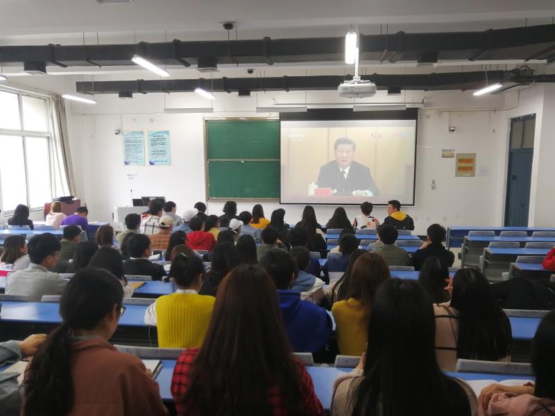 当天中午,十大信誉网赌学生干部和团员代表聚集在教学楼合404教室,第一时间集体观看学习了习近平总书记重要讲话精神。团总支负责人韩飞老师参加了此次学习活动。