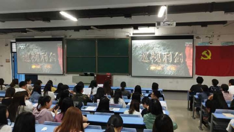 整个活动在威严庄重的《国际歌》中拉开帷幕, 在活动中,所有党员分批进行了入党宣誓或重温入党誓词,对新发展的27名同志佩戴党员党徽,王曼同志作为预备党员代表发言,全体奏唱国歌后,所有党员集体观看了廉政教育影片《巡视利剑》。在影片中我们看到了后悔莫及的辽宁省省委原书记王珉;采访中直呼是自己害了弟弟的福建省原省长苏树林,以及听到自己的宣判结果黯然落泪的天津市公安局原局长武长顺。影片向我们展示了党中央通过巡视,查处王珉、苏树林,武长顺等腐败分子,发挥巡视作用,净化政治生态的过程和作用。