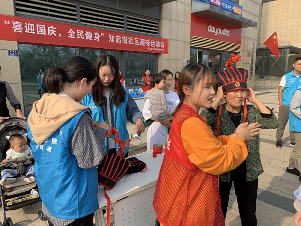 2019年9月21日,为庆祝中华人民共和国成立70周年,提高社区老年居民的身体素质和健康水平,展示志愿者们热情的精神风貌,龙子湖街道办事处知启街社区党支部与澳门信誉最好十大平台澳门十大信誉网赌大全志愿者协会联合在知启街社区为老人们共同举办了一场“喜迎国庆,全民健身运动会”。