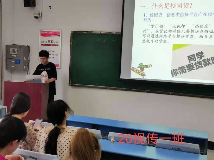 为帮助在校学生增强校园贷风险防范意识,提升自我防护能力, 澳门十大信誉网赌大全于2021年5月6日-13日分班级召开以“理性科学消费 拒绝校园网贷”为主题的校园贷风险防范专题教育宣讲活动。