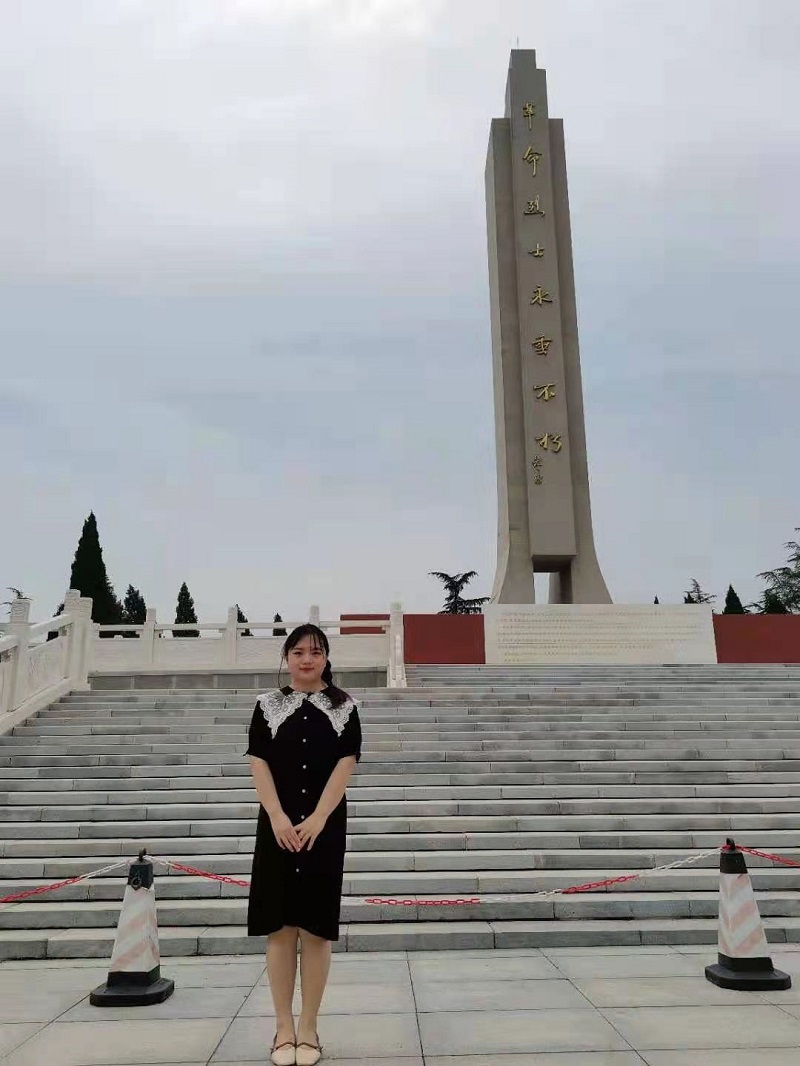 许昌烈士陵园位于河南省许昌市塔东路,现有革命烈士纪念馆、革命烈士纪念碑、烈士公墓、义斋亭四个纪念区。学生曹畅首先来到革命烈士纪念馆,通过馆内影像资料及工作人员的详细讲解,怀着无比崇敬的心情参观了抗战文物、战斗事迹展览等,对维护国家主权和世界和平牺牲的烈士们有了更直观的了解,他们舍已为人,为维护国家尊严、人民幸福献出了青春和热血,这些历历在目的历史,作为中华儿女应时刻铭记,不忘初心,牢记历史。站在革命烈士纪念碑前,外形是两支靠在一起的汉阳造步枪,象征着解放许昌的两支劲旅——华东野战军和中原野战军。碑体上“革命烈士永垂不朽”的金色大字由朱德元帅题写。学生站在纪念碑前,深深地感受到今天来之不易的幸福生活,进一步增强自己的使命感、紧迫感、责任感。感受峥嵘岁月的同时,重温和加深了对党史的了解和理解,更加汲取了“不忘初心,牢记使命”的精神动力。