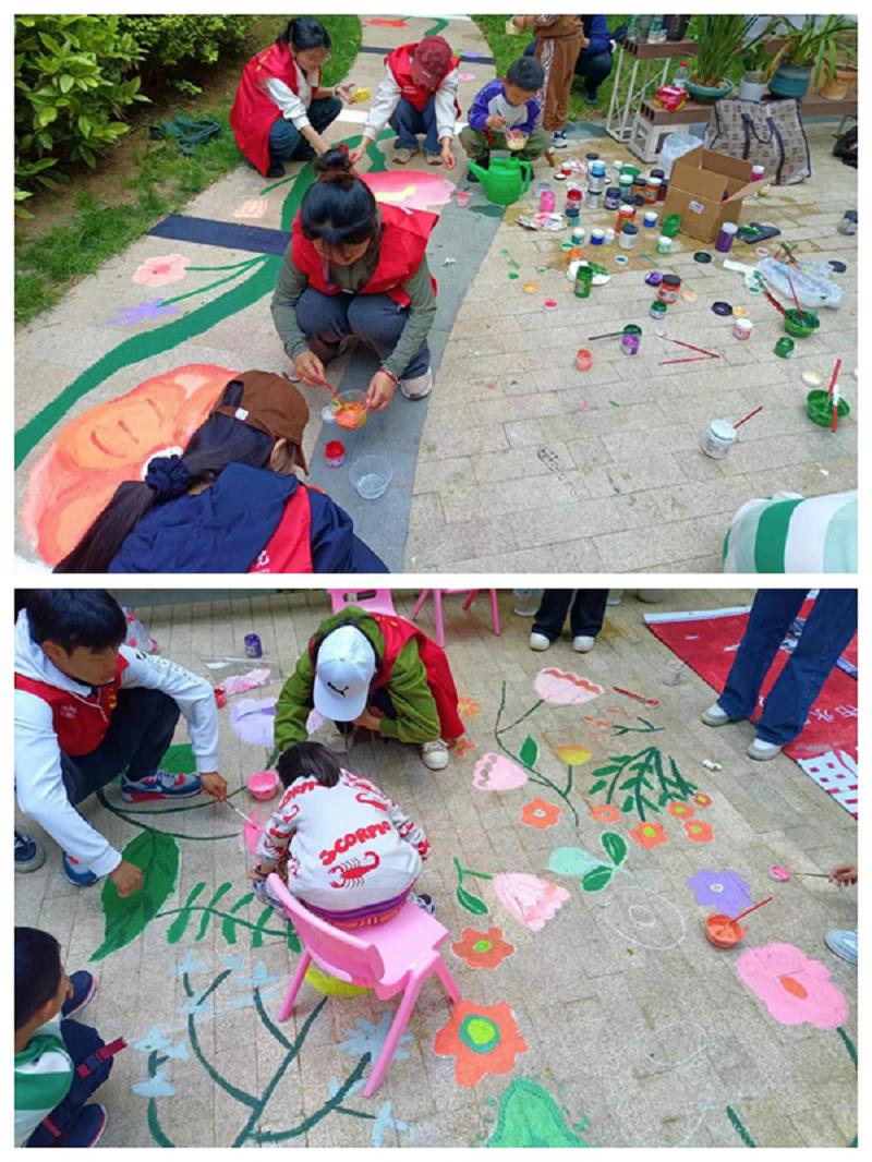 在活动中,大家热情高涨,充分发挥个人专业特长,或三两人一组,或四五人一队,勾勒线条、填充颜色,发挥创意,将一幅幅充满新意的画作呈现在社区的地面和墙面上,这些充满生机和活力的画作有美丽的花朵,还有丰富多彩的动物、植物,为社区增添了一道靓丽的风景线。受志愿者们感染,社区的居民们也纷纷加入涂绘的行列,或请教或自创,共同参与美化自己的生活园区,抒发自己对社区的深厚感情。经过一天的努力,丰富多彩的植物和栩栩如生的动物布满了园区,受到社区居民一致好评。活动结束后,同学们纷纷表示,此次活动的开展让我们体会到了团结协作的力量,见证了美化家园的成果,也感受到了春天带来的美好气息。